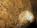 - Zasintrovaná netopýří kost. Tahle je ale pravděpodobně spláchnutá z povrchu a nebylo to dávno. Pokoušel jsem ji vzít, ale usilovně se bránila, tak jsem ji tam nechal.