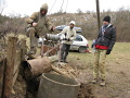 Obě soboty probíhaly také zakončovací práce na lokalitě Krasovský ponor, kde byla usazena a pomalu obsypána poslední skruž. Bylo to skoro, jak se říká za pět minut dvanáct, protože některá prkna šla už rozmačkat rukama. Když si zavzpomínám, u výkopu této šachty jsem se také angažoval a byla zahájena v r. 2000, jako provizorní šachta do otevřeného spodního patra propadání. V neděli pak zaplála dýmící vatra, trosky výdřevy byly uklizeny přirozenou cestou. Se skupinovým kolegou jsme vylezli jeden komín v jeskyni, jinak se v podstatě nic zvláštního nedělo. To byl předposlední víkend o kterém jsem nic nenapsal.