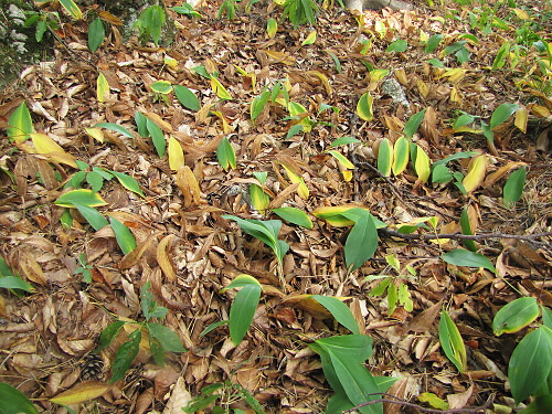 - Kdysi voňavé stráně Lipoveckého žlebu. Konvalinky se na podzim realizují podélně dvoubarevně.