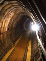 Na podlaze udusané bahno se solí, jen velmi zřídka je vyřezaný otvor do výdřevy, kde je vidět původní stěna a hornina. Poslední příšernost - mluvícího mechanického horníka v životní velikosti s vousy, který pohyboval hlavou a dolní čelistí. Tohle jsem už neměl sílu fotit. Zpestřením hlavně pro děti můžou být dvě celkem dlouhé dřevěné skluzavky a také vláček na povrch. Tento by našimi bezpečnostními směrnicemi nikdy neprošel. Když jsem se koukal na vlajcí vlasy dívek přede mnou, 15cm pod sropem pobitým plechy s dráty v kombinaci s docela velkou rychlostí, docela mě mrazilo. Vybál jsem se. V podstatě stačilo reflexní máchnutí po ztracené čepici, otočení střapaté hlavy, podrbání se za krkem. Mezi stěnou a kolejí nebylo žádné místo pro kompromisy.