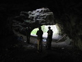 Kras s jeskyněmi. Navštívili jsme taky zajímavou jeskyňku v pravé údolní stráni poblíž Tří kotlů. Nu což, stále jsme oblečení v montérkách. Jeskyně s číslem 1176 je ponorná jeskyně vytvořená na vrstevních plochách lažáneckých vápenců a míří do nitra planiny z jihu. Kdysi se zde těžilo ve velkolepém stylu pomocí huntu na kolejích, sestřelováním stropů a stěn. Dnes je zajímavější a úspornější pokračovat vstříc přítokům odspodu. Stará štola je skvělým příkladem. Jinak moc pěkná jeskyňka s drobounkou pisolitovou výzdobou.